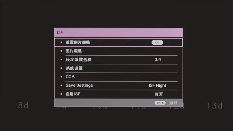 由此可见,其实ISFccc认证属于ISF针对产品系统方面的认证,主要是让显示设备如家庭影院投影机具备完善的画面调校功能,而在不少通过了ISFccc认证的家庭影院投影机之中你可以找到ISF专属的菜单,可惜的是这样的ISF调试功能并非留给普通用户的,而是给通过了ISF视频工程师认证的技术人员。通过专门的密码进入之后,就可以利用当中完善的调校功能分别设定白天和晚间模式。要注意的一点,对于普通用户来说,通过了ISFccc认证并不代表这台投影机就一定拥有出众的画面预设模式,而是说这台投影机能够让专门的技术人员设定ISF白天模式与晚间模式,设定好了之后,你就能拥有两个专门针对你视听室环境与所搭配的投影幕、信号源的优化模式。